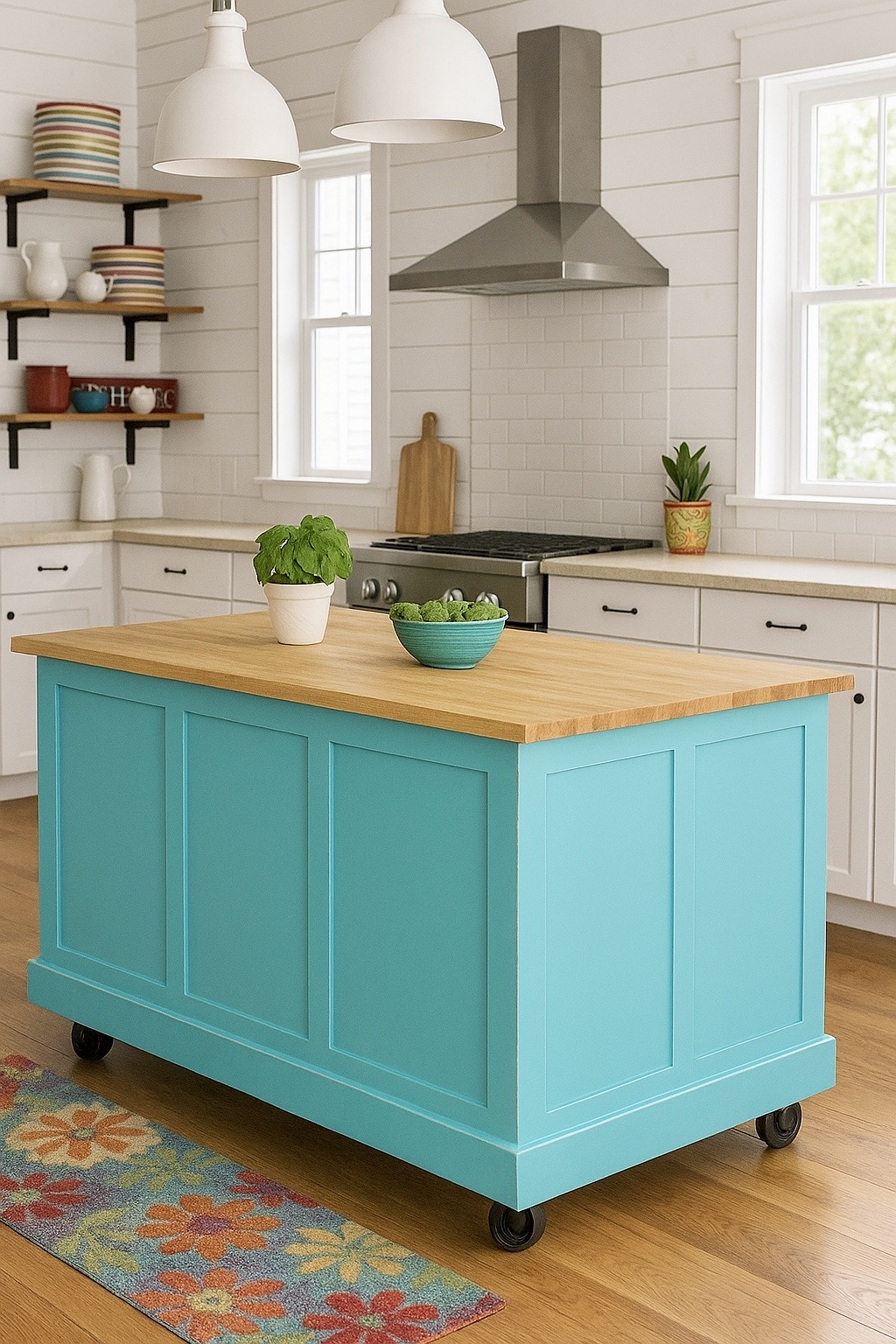 4 reviews for Blue Industrial Kitchen Island On Wheels